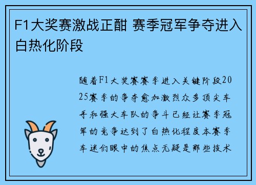 随着F1大奖赛赛季进入关键阶段,2025赛季的争夺愈加激烈。众多顶尖车手和强大车队的争斗,已经让赛季冠军的竞争达到了白热化程度。本赛季,车迷们眼中的焦点无疑是那些技术精湛、车队实力雄厚的车手和团队,他...