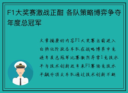 • F1大奖赛激战正酣 各队策略博弈争夺年度总冠军