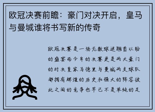 • 欧冠决赛前瞻:豪门对决开启,皇马与曼城谁将书写新的传奇