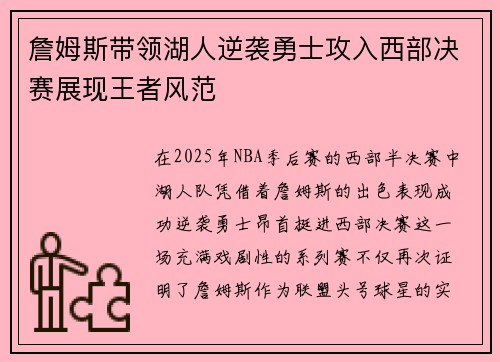 • 詹姆斯带领湖人逆袭勇士攻入西部决赛展现王者风范