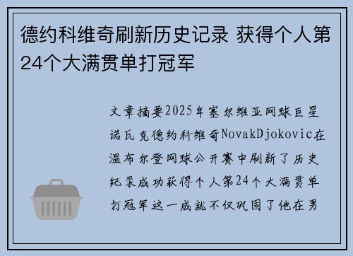• 德约科维奇刷新历史记录 获得个人第24个大满贯单打冠军