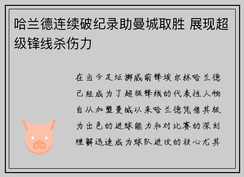 • 哈兰德连续破纪录助曼城取胜 展现超级锋线杀伤力