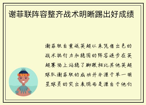 谢菲联自重返英超以来,凭借出色的战术执行力和稳固的阵容,逐步在英超赛场上站稳了脚跟。相比其他英超球队,谢菲联的成功并非源于单一明星球员的突出表现,而是源自于他们整体阵容的协作与战术的精确实施。球队在这...