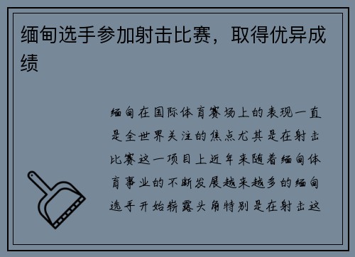 缅甸在国际体育赛场上的表现,一直是全世界关注的焦点,尤其是在射击比赛这一项目上。近年来,随着缅甸体育事业的不断发展,越来越多的缅甸选手开始崭露头角,特别是在射击这一技术性极强的项目中,缅甸选手凭借着出...