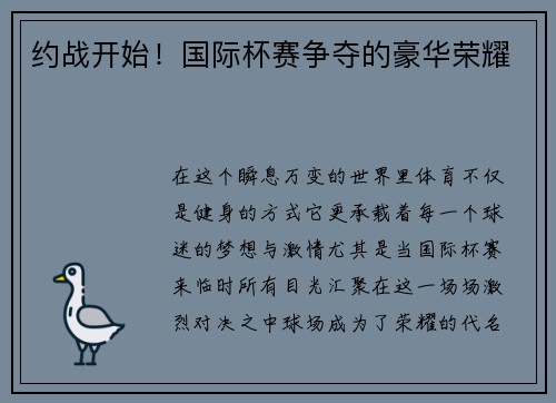 • 约战开始!国际杯赛争夺的豪华荣耀