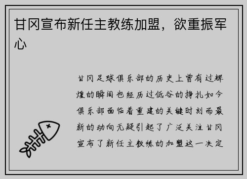 • 甘冈宣布新任主教练加盟,欲重振军心