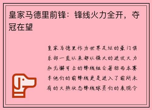 • 皇家马德里前锋:锋线火力全开,夺冠在望